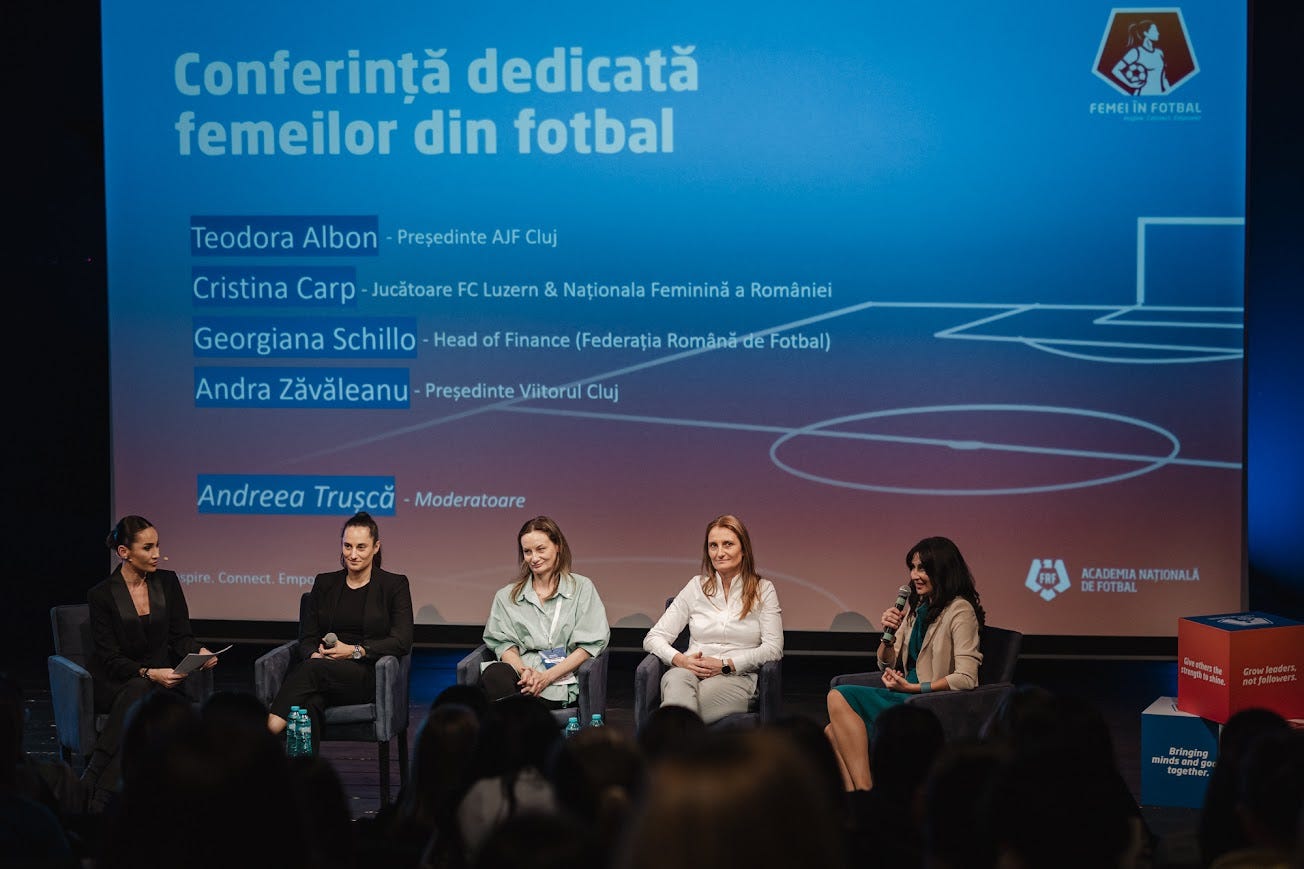 Săptămâna aceasta am participat la prima conferință dedicată femeilor din fotbal, organizată de Academia Națională de Fotbal cu scopul de a consolida această comunitate și de a crea o platformă de dialog și inspirație care să accelereze schimbarea în fotbalul feminin românesc și european.