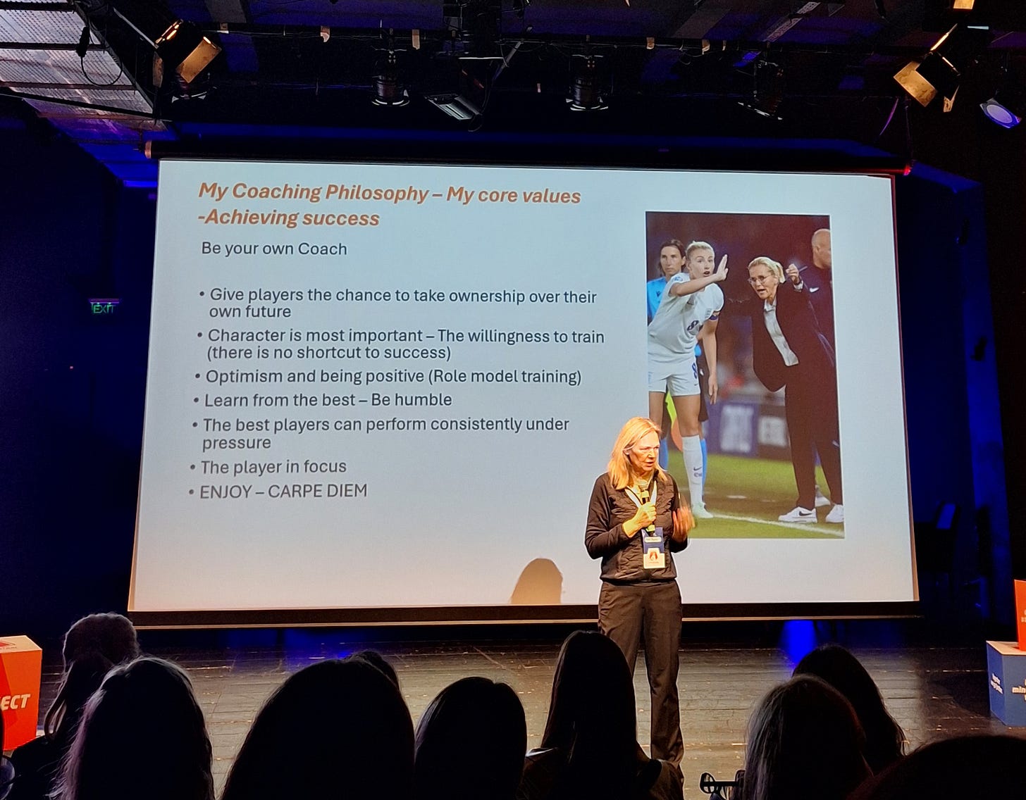 Înainte de a fi un lider pentru alții, trebuie să te cunoști pe tine, a spus Anna Signeul, fostă jucătoare și antrenoare a naționalelor feminine ale Scoției și Finlandei. E expertă FIFA și UEFA și, de anul trecut, e consultantă în dezvoltarea fotbalului feminin pentru Federația Română de Fotbal.
