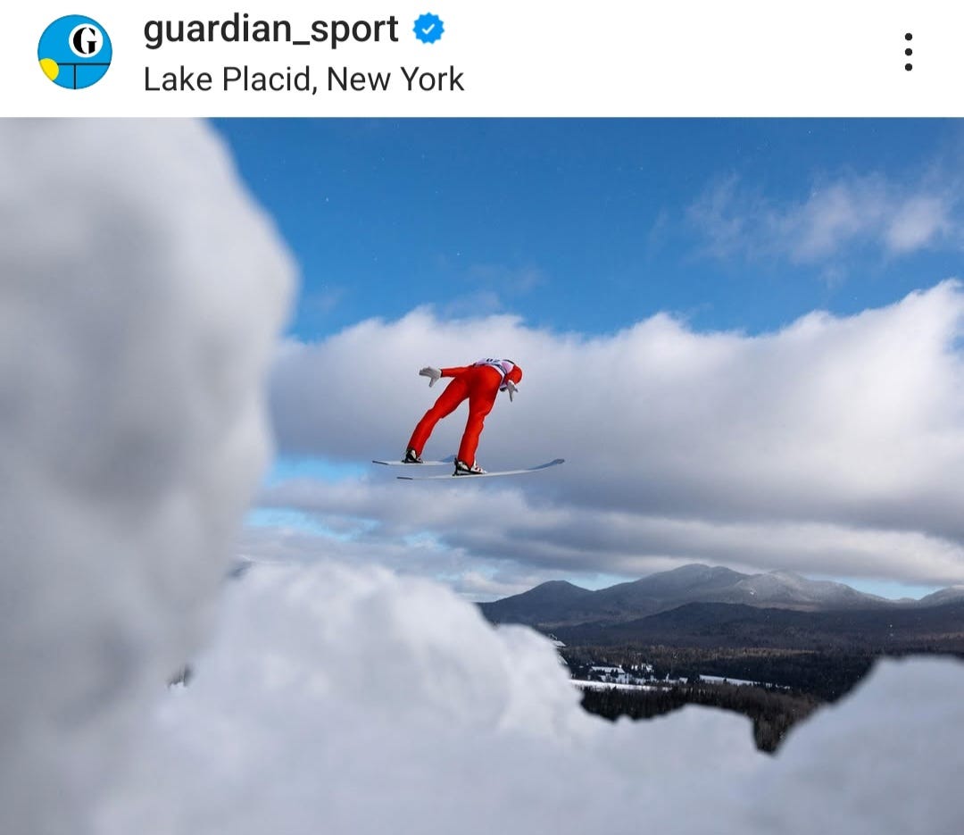 ⛷️Până atunci, vă las cu acest zbor printre nori al elvețianului Yanick Wasser, surprins de fotograful Al Bello la Cupa Mondială de sărituri cu schiurile de la Lake Placid, New York.